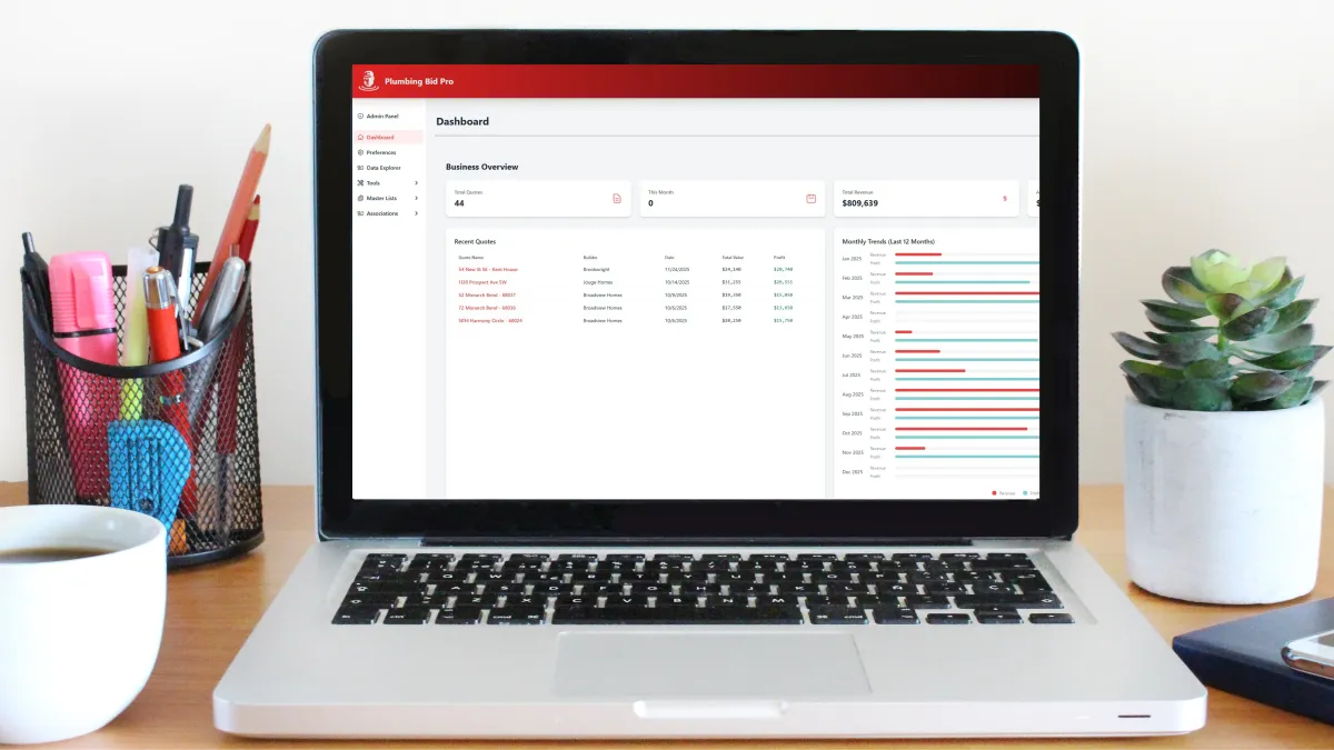 Plumbing Bid Pro is a specialized software designed to help plumbing professionals create fast, accurate, and detailed quotes for their services.